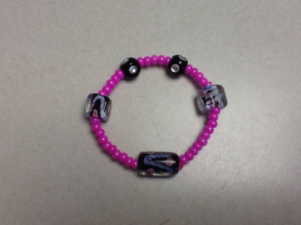 Girls pink and black beaded bracelet: fits girls 2-4 years old.
